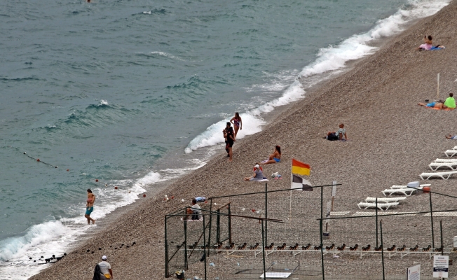 Antalya’da yağmur bulutları ve rüzgar dünyaca ünlü sahili boşalttı. Sahilde çok az sayıda kişi denize girerken, bazıları da boş sahilin manzarası eşliğinde fotoğraf çekindi.