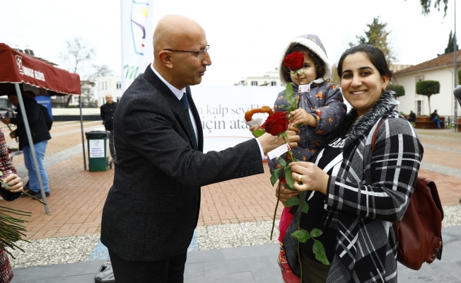 Sevgililer Gününde 5 bin çicek dağıtıldı
