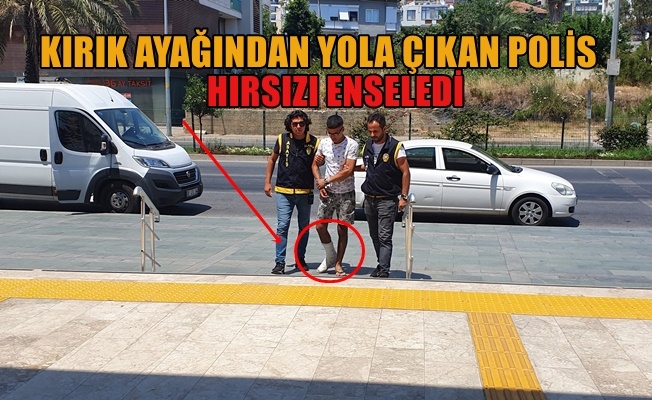 Olay, Çarşı Mahallesi İskele Caddesi’ndeki bir apartmanda meydana geldi. Önceki gün saat 06.00 sıralarında apartmandaki bir daireye giren şüpheli içerisinde bin 425 TL ve bir miktar döviz bulunan çantayı alarak çıktı. Şüpheli daha sonra aynı apartmanın 2’inci katındaki bir daireye girdi. Girdiği dairede ev sahibinin gürültüleri duyup bağırması üzerine telaşa kapılan şüpheli, balkona çıkıp aşağı atladı. Yaklaşık 5 metre yükseklikten atlayan hırsızlık şüphelisi sağ ayağı kırıldı. Yürümekte zorlanan şüpheli hızla olay yerinden uzaklaştı. Hırsızlık ihbarını alan Alanya İlçe Emniyet Müdürlüğü Asayiş Büro Amirliği ekipleri harekete geçerek olayın olduğu bölgedeki güvenlik kameralarını incelemeye aldı. Yapılan incelemelerde ekipler hırsızlık şüphelisinin Cihan B. (24) olduğunu tespit etti. Asayiş ekipleri kırık ayağından yola çıkarak yaptıkları teknik ve fiziki takip sonrası Cihan B.’i Atatürk Caddesi’nde bir iş hanında yakalayarak gözaltına aldı. Emniyetteki işlemlerinin ardından adliyeye sevk edilen Cihan B. sulh ceza hakimliğince tutuklanarak cezaevine gönderildi. Adliyeye sevk edildiği sırada ise ayağının kırık olması nedeniyle aksayarak yürümekte zorlanan Cihan B.’ye polislerin yardım ettiği görüldü. -Erdal ANAK