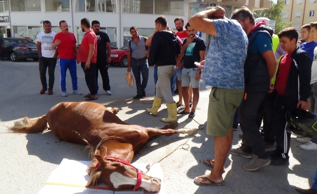 Antalya’nın Kumluca ilçesinde ipinden boşanan at trafiğe dalınca, minibüse çarpması sonucu ağır yaralandı.