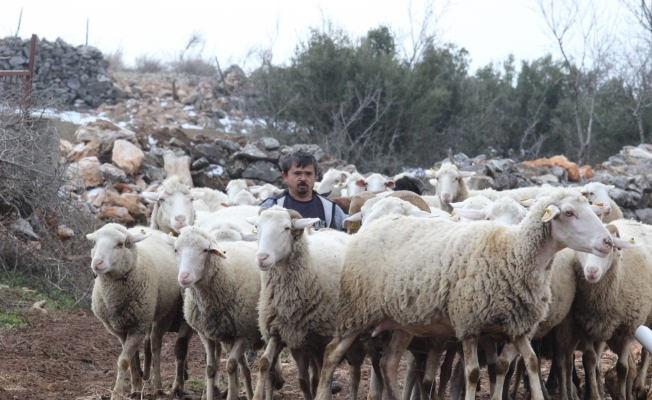Bursa'da 80 santim boyundaki çoban onlarca koyunu tek başına güdüyor.