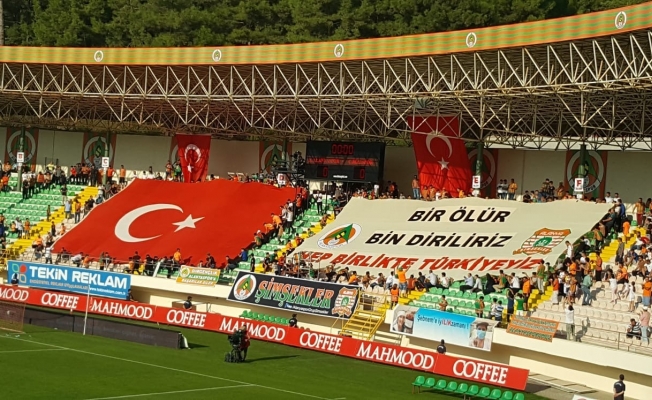 Aytemiz Alanyaspor ile Çaykur Rizespor Bahçeşehir Okulları Stadyumu’nda karşı karşıya gelisi. Karşılaşma öncesi Alanya Kuzey Kale Arkası tribünlerinde bulunan Grup Şimşekler’in açtığı pankart dakikalarca ayakta alkışlandı. Şimşekler Lider Fatih Aslan ve taraftarların hazırladığı pankartta ‘Bir ölür, bin diriliriz. Hep Birlikte Türkite” yazısı yer aldı.