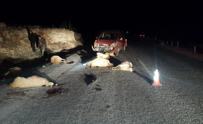 Afyonkarahisar’ın Hocalar ilçesinde kamyonet karayolundan geçmeye çalışan koyun sürüsünün içine daldı. Olayda kamyonetin çarptığı 18 koyun telef oldu.