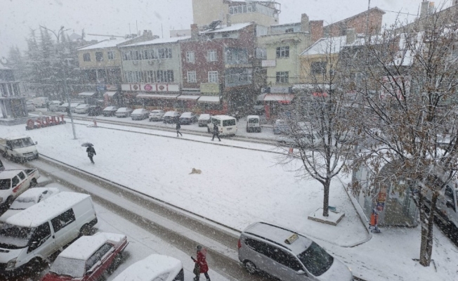 Afyonkarahisar’ın Şuhut ilçesinde sabah erken saatlerde ani bastıran kar yağışı ilçeyi kısa sürede beyaz bir örtüyle kapladı.