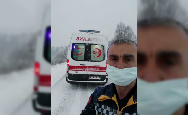 Amasya’nın Taşova ilçesinde ambulans, tipi sebebiyle yolda mahsur kaldı.