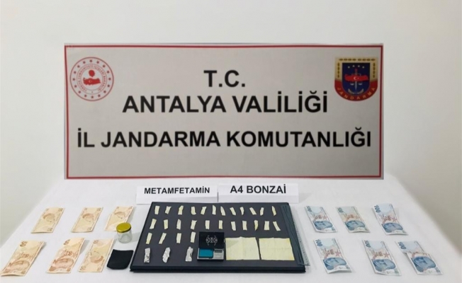 Manavgat Cumhuriyet Başsavcılığı koordinesinde Antalya İl Jandarma Komutanlığı ekipleri tarafından uyuşturucu ile mücadele kapsamında yürütülen çalışmalar neticesinde Manavgat’ın Beşkonak Mahallesi’nde Ö.G. isimli şahıs aracında uyuşturucu madde satışı yaptığı esnada suçüstü yakalandı. Araçta yapılan aramada 5X1,5 santim ebadında 29 parça kağıda emdirilmiş bonzai, 10X10 santim ebadında 2 parça kağıda emdirilmiş toplam 400 içimlik satışa hazır bonzai, 1 adet hassas terazi, 5X5 santim ebadında içinde uyuşturucu kırıntısı olan cam kavanoz, 1 paket 10 gramlık metamfetamin ele geçirildi. Olayla ilgili şüpheli Ö.G., "uyuşturucu madde imal ve ticareti" suçundan gözaltına alındı.