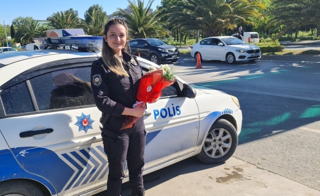 Bakırköy’de görevi başındaki kadın polislere Anneler Günü’nde çiçek sürprizi
