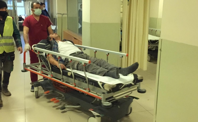 Bursa-Ankara yolunda orta yol refüj çalışmaları sırasında kepçeye kafasını çarpan işçi yaralandı.