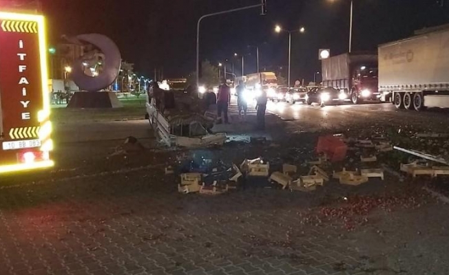 Edinilen bilgiye göre, kaza Öğretmenevi kavşağında bulunan ışıklarda meydana geldi. Yücel A. idaresindeki 17 ET 940 plakalı kamyon, Yaşar T. idaresindeki 10 H 3793 plakalı çilek yüklü kamyonetle çarpıştı. Kazaya, itfaiye, sağlık ve polis ekipleri müdahale etti. Ters dönen kamyonette bulunan sürücü ise hastaneye kaldırılarak tedavi altına alınırken, araçta bulunan çilekler ise yola dağıldı. Kazayla ilgili soruşturma sürüyor.