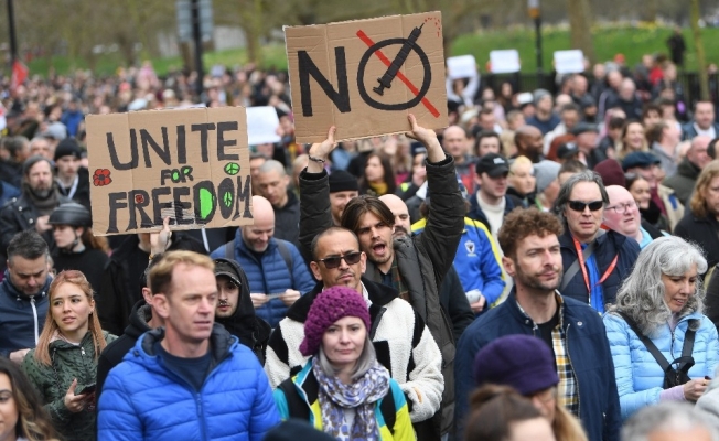 Dünyayı etkisi altına alan yeni tip korona virüs (Covid-19) salgını ile mücadele eden ülkelerden İngiltere’de salgına yönelik alınan tedbirler protesto edildi. Hükümetin salgın ile mücadele kapsamında uyguladığı tedbirleri protesto etmek için başkent Londra’da binlerce kişi sokaklara döküldü. Hyde Park’ın önünde toplanan göstericiler, "Virüsten değil Westminster’dan korkun", "Çocuklarımızın hayatını mahvetmeyi bırakın" yazılı pankartlar ve sloganlar eşliğinde yürüdü. Protestocuların çoğunun maske takmadığı görüldü.
