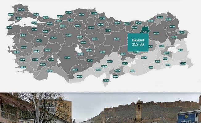 Bakan Koca’nın paylaştığı haritada 24-30 Nisan 2021 tarihli vaka sayısı Bayburt’ta 352,83 olarak yer aldı.