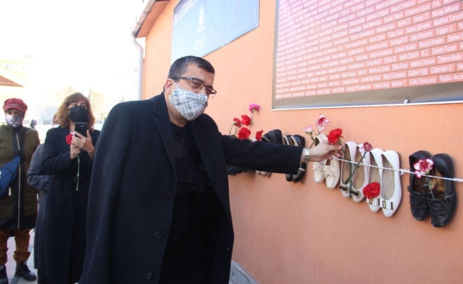 Konuşmanın ardından ayakkabılara kadınlar tarafından kırmızı karanfil bırakılarak, iş yerlerinde çalışan kadınlara hediyeler dağıtıldı.