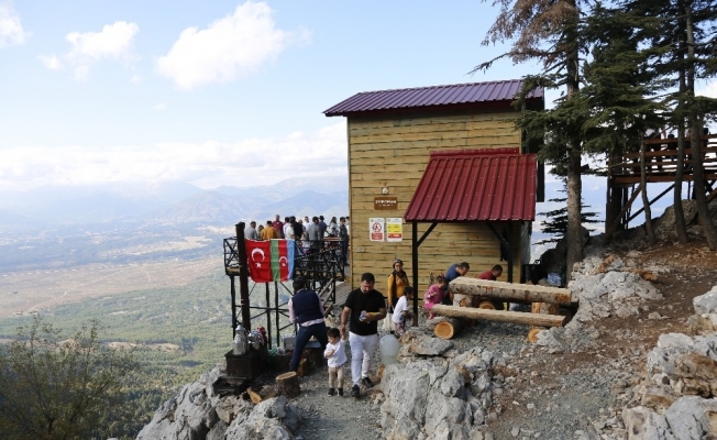 Adana’nın Aladağ ilçesinde Belediye Başkanı Mustafa Akgedik’in kısa süre önce bin 500 rakımlı seyir terasına yaptırdığı çardak, muhteşem manzarasını görmek ve fotoğraflamak isteyen ziyaretçilerin akınına uğradı.