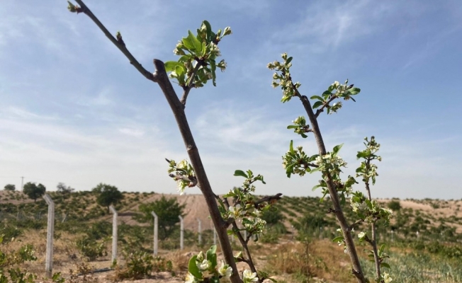 Nevşehir’in Gülşehir ilçesine bağlı Karacaşar Mahallesinde bir bahçede bulunan erik ağacı meyve vermesinin ardından Ekim ayında yeniden çiçek açtı.