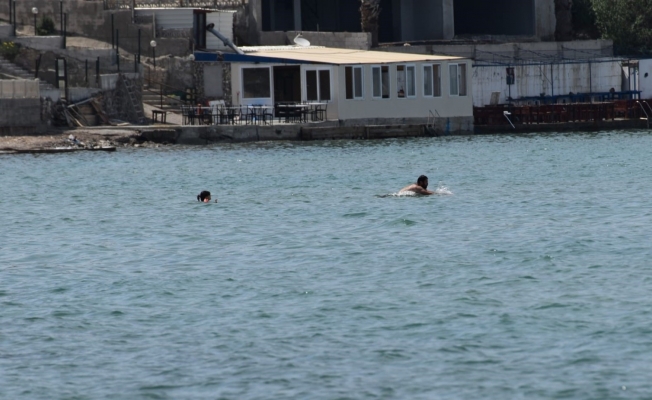 İzmir’in Urla ilçesinde, tam kapanmaya yönelik tedbirler yoğun bir şekilde devam ederken, hava sıcaklıklarının yükselmesiyle bazı vatandaşlar tenha yerlerde gizli gizli denize girdi.