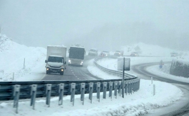 Uzun araçlar yolda kaldı, kar etkili oldu