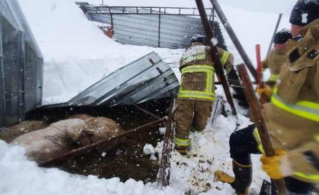 Yoğun kar yağışı damı çökertti, 10 koyun telef oldu