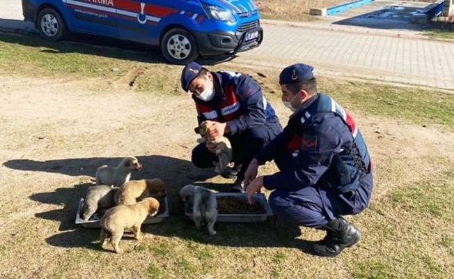 Jandarma sokak hayvanlarını elleriyle besledi