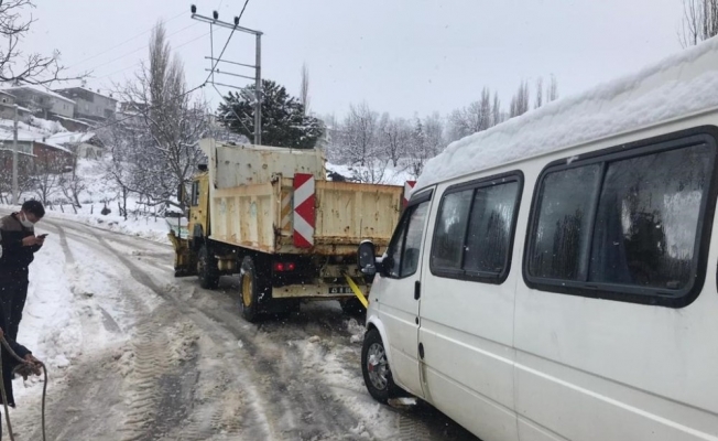 Karda mahsur kalan öğrenci servisi kurtarıldı