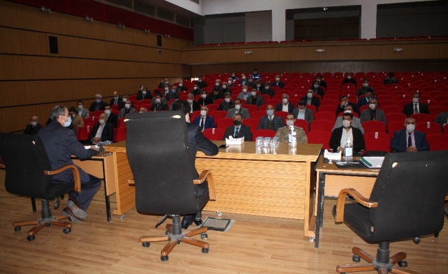 Milli İrade İlk-Ortaokulu konferans salonunda her ay yapılan muhtarla toplantısı, Kaymakam Tekin Dundar başkanlığında, Belediye Başkan Vekili Abdürrahim Çelik, Emniyet Müdürü Bolkar Bostancı, Merkez Komutanı Jandarma Yüzbaşı Kalendar Savaş Ünal ve 72 mahalle muhtarının katılımıyla gerçekleştirildi. Toplantı, Kaymakam Dündar’ın konuşması ardından Belediye Başkan Yardımcısı Abdürrahim Çelik, geçen ay yaptığı çalışmalar ve önümüzdeki aylarda yapılacak olan projeleri sinevizyon eşliğinde muhtarlara anlattı.
