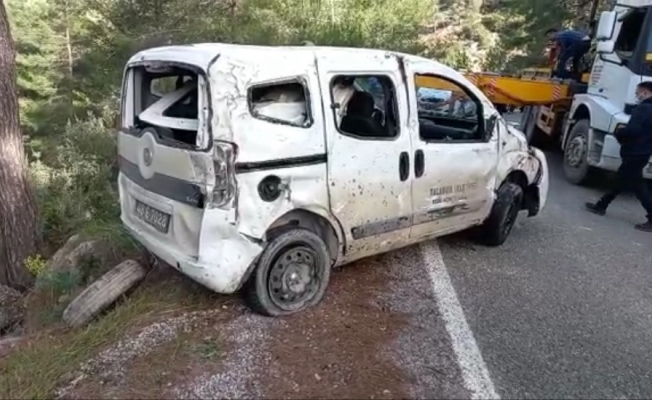 Uçuruma yuvarlanan belediye aracının şoförü yaralandı