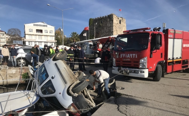 Denize düşmeye ramak kalan otomobil ise vinç yardımcıyla kıyıya çıkarıldı.