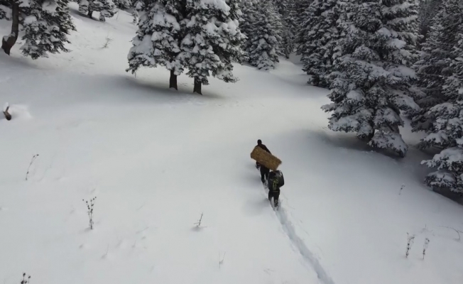 Sinop’ta olumsuz kış şartlarında yaban hayvanları aç kalmasın diye yemleme çalışması yapılıyor.