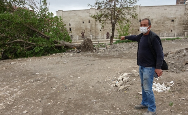 Sivas’ta kökünden sökülen ağaçlar fırtınanın kuvvetini ortaya koydu.