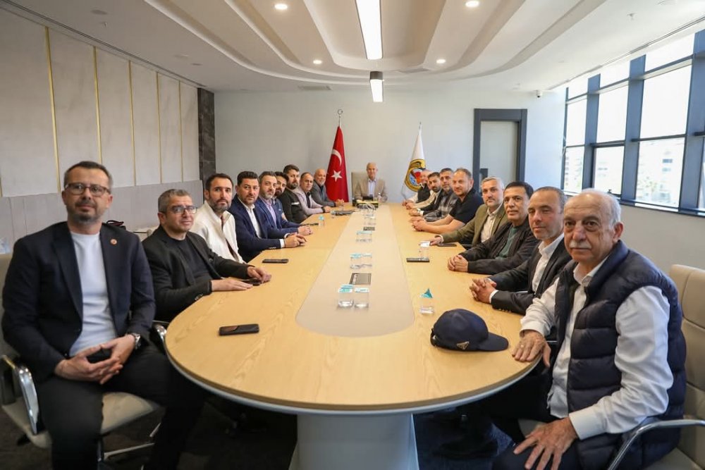 Alanyaspor Başkanı Hasan Çavuşoğlu ve yönetim kurulu, Alanya Belediye Başkanı Osman Tarık Özçelik’e yeni belediye binasının hizmete açılmasından dolayı hayırlı olsun ziyaretinde bulundu.