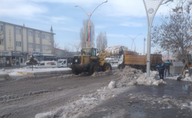Van’ın Çaldıran Belediyesi ekipleri, son bir haftada etkili olan kar yağışının ardından çarşı merkezinde bulunan kaldırımları ve binaların çatılarında oluşan buz sarkıtlarını temizlenerek olası buzlanmaya karşı da tuzlama çalışması yaptı.