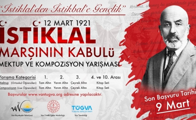Van Büyükşehir Belediyesi ile İl Milli Eğitim Müdürlüğü, Türkiye Gençlik Vakfı (TÜGVA) koordinatörlüğünde İstiklal Marşı’nın kabulü konulu mektup ve kompozisyon yarışması düzenleyecek.