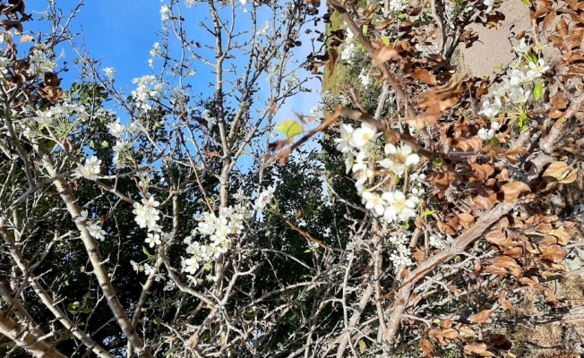 Yozgat’ın Sorgun ilçesinde, armut ağacının mevsim normallerinin dışında çiçek açması görenleri şaşırttı.