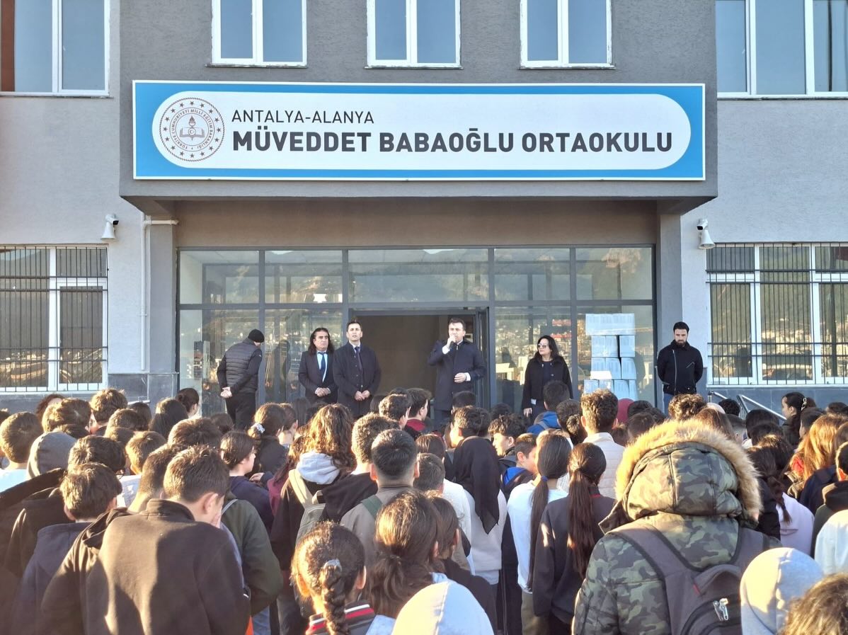 Alanya’da hayırsever-devlet işbirliği ile inşa edilen 24 derslikli Müveddet Babaoğlu Ortaokulu, düzenlenen törenle eğitim-öğretime başladı. Açılış töreninde İstiklal Marşı okundu ve öğrenciler okula adım attı. Alanya Milli Eğitim Müdürü Yusuf Yılmaz, okulun yapım ve açılış sürecinde emeği geçen herkese teşekkür etti.