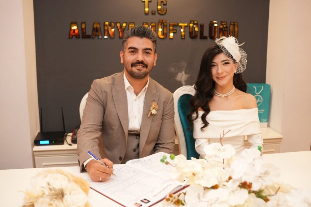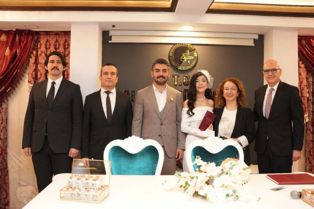 Alanya Cumhuriyet Başsavcılığı çalışanlarından Şeyma Mazman ve Yusuf Temmuz Arık, bir ömür boyu mutluluğa EVET dediler. Geçtiğimiz günlerde Arık ve Mazman ailesinin çocukları Şeyma Mazman ve Yusuf Temmuz Arık, Alanya Müftülüğü’nde Cumhuriyet Başsavcısı Celal Tekin, Adalet Komisyonu Başkanı Erhan Yılmaz, Ağır Ceza Başkanı Tuna Tekin ve Cumhuriyet Savcısı Muhammet Çalış’ın şahitliği eşliğinde, tüm sevenleriyle beraber evet diyerek dünya evine girdiler.
