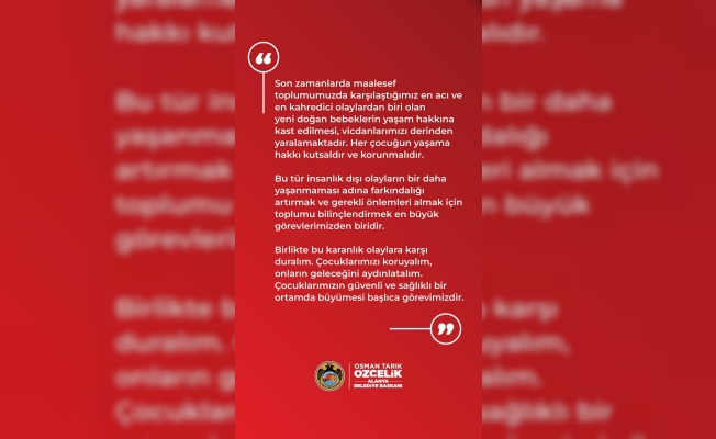 Son zamanlarda maalesef toplumumuzda karşılaştığımız en acı ve en kahredici olaylardan biri olan yeni doğan bebeklerin yaşam hakkına kast edilmesi, vicdanlarımızı derinden yaralamaktadır. Her çocuğun yaşama hakkı kutsaldır ve korunmalıdır. Bu tür insanlık dışı olayların bir daha yaşanmaması adına farkındalığı artırmak ve gerekli önlemleri almak için toplumu bilinçlendirmek en büyük görevlerimizden biridir. Birlikte bu karanlık olaylara karşı duralım. Çocuklarımızı koruyalım, onların geleceğini aydınlatalım. Çocuklarımızın güvenli ve sağlıklı bir ortamda büyümesi başlıca görevimizdir.