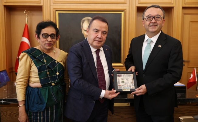 Antalya Büyükşehir Belediye Başkanı Muhittin Böcek, Sri Lanka Demokratik Sosyalist Cumhuriyeti’nin Ankara Büyükelçisi Saranya Hasanthi Urugodawatte Dissanayake ve Sri Lanka'nın Antalya Fahri Konsolosu Ali Kamburoğlu’nu ağırladı.