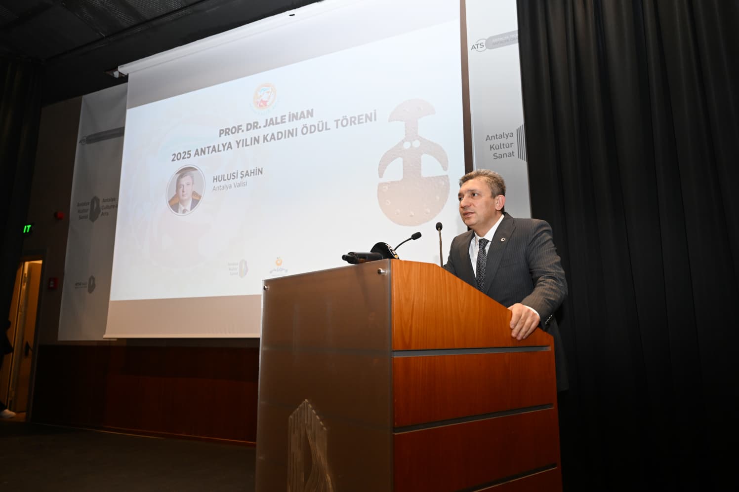 Türkiye'nin ilk kadın arkeoloğu olan Prof. Dr. Jale İnan adına düzenlenen Profesör Doktor Jale İnan 2025 Antalya Yılın Kadını Ödül Töreni, Antalya Kültür Sanat Oditoryumu’nda gerçekleştirildi. Antalya Tanıtım Vakfı (ATAV) ve Antalya Kadın Müzesi iş birliğiyle bu yıl 10’uncusu düzenlenen törene; Vali Hulusi Şahin, Muratpaşa Kaymakamı İhsan Kara, ATSO Başkanı Yusuf Hacısüleyman, ATAV Yönetim Kurulu Başkanı Emir Gündal ve Yılın Kadını adayları katıldı.