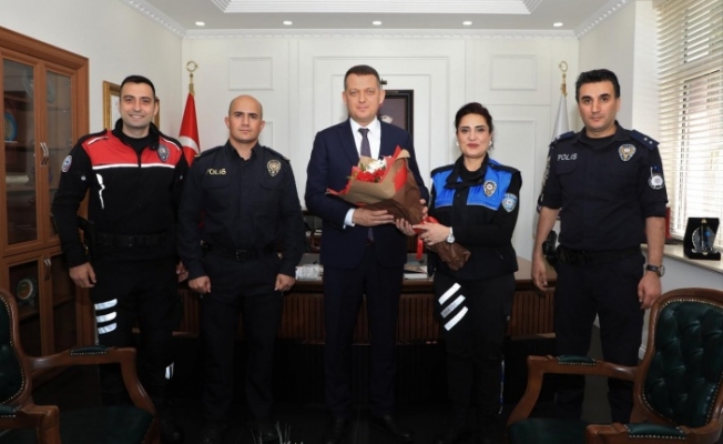 Türk Polis Teşkilatının 178. kuruluş yıl dönümü ve 10 Nisan Polis Haftası nedeniyle Alanya İlçe Emniyet Müdürü Murat Kenan Patat ve beraberindeki polisler Alanya Kaymakamı Dr. Fatih Ürkmezer’e nezaket ziyaretinde bulundular.