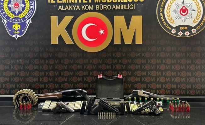 Alanya Emniyet Müdürlüğü birimlerince “6136 Sayılı Kanun’a Muhalefet Etmek” suçu kapsamında Alanya’da yapılan operasyonlar neticesinde; 1 uzun namlulu otomatik silah, 12 tabanca, 3 av tüfeği, 19 şarjör, 829 tabanca fişeği, 84 av tüfeği kartuşu ve 7 boş kovan ile 3 şüpheli ele geçirildi.
