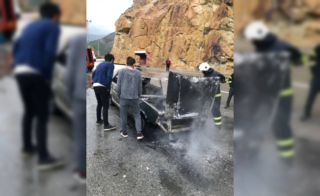Artvin’de seyir halindeyken alev alan otomobil kullanılmaz hale geldi. Sürücü ve arkadaşı yanan araçtan atlayarak son anda kurtuldu.