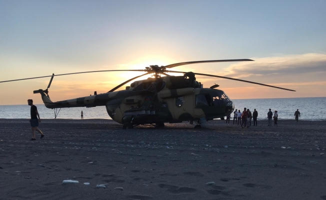 Azerbaycan bayraklı helikopter Giresun’da plaja acil iniş yaptı