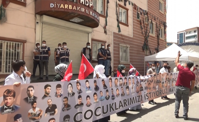 Çocuklarının terör örgütü PKK mensupları tarafından dağa kaçırıldığı iddiasıyla HDP Diyarbakır İl Başkanlığı önünde evlat nöbetine devam eden ailelerin eylemi 627’nci gününe girdi. Aileler, HDP il başkanlığı binasının kepenklerinin kapatılmasına üzerinde kaçırılan çocuklarının resminin bulunduğu pankartla tepki gösterdi.