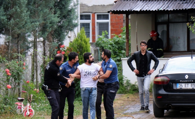 Sakarya’nın Adapazarı ilçesinde eşinde kızdığı öne sürülen şahıs, evini ateşe verip kendisini içeriye kilitledi. Ekiplere zor anlar yaşatan şahıs, yangın söndürüldükten sonra polis ekiplerince güçlükle sakinleştirilerek ifadesi alınmak üzere karakola götürüldü.