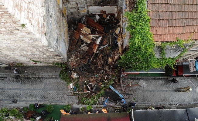 Fatih’te 3 katlı ahşap bina bir anda çöktü. Bina çökmeden önce oradan geçen 2 kadın saniyelerle kurtulurken, çöken binanın enkazı drone ile havadan görüntülendi.