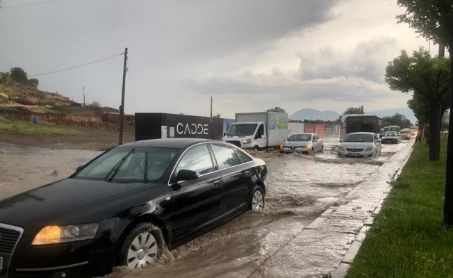 Kayseri’de sağanak yağışın etkili olmasının ardından caddelerde su baskınları meydana gelirken, bazı araçlar da yolda kaldı.