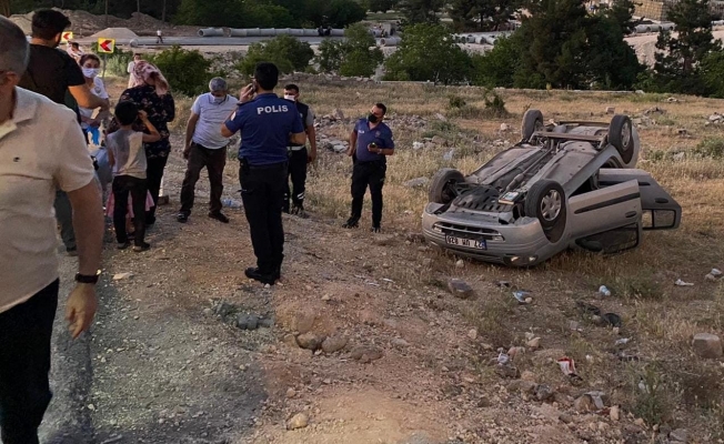 Gaziantep’te kontrolden çıkan otomobil taklalar atarak menfeze uçtu. Kazada 4 kişi yaralandı.