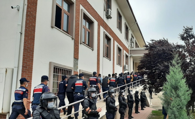 Robocop kıyafetli jandarma ekipleri eşliğinde adliyeye sevk edildiler