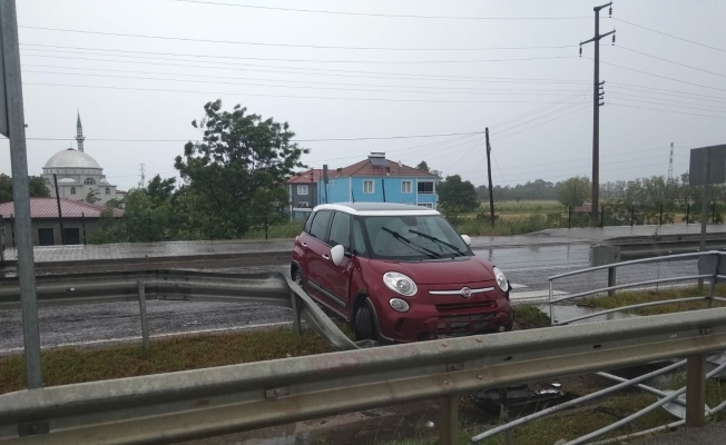 Sudan dolayı kayan otomobil bariyerlere çarptı: 1 yaralı