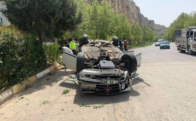 Şanlıurfa’nın Birecik ilçesinde kaldırıma çarpan otomobil ters döndü. Devrilen otomobilin sürücüsü yaralandı.