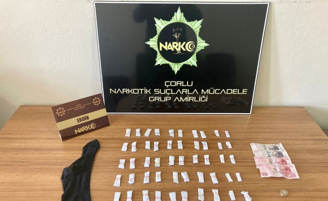 Tekirdağ İl Emniyet Müdürlüğü Narkotik Suçlarla Mücadele Şube Çorlu Grup Amirliği ekiplerince uyuşturucu ve uyarıcı madde ticareti yapan şahıslara yönelik çalışma yapıldı. İlçede bulunan Hıdırağa (Kore) Mahallesinde tespit edilen bir şahsın üzerinde ve bekleme yaptığı yerde yapılan aramada 58 fişek eroin maddesi, uyuşturucu madde satışından elde edildiği değerlendirilen 33 TL para ele geçirildi.